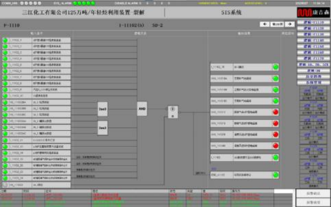 7套SIS系統(tǒng)自動化程度高、安全可靠性強,將生產(chǎn)中主要、關(guān)鍵、危險的工藝操作全部編成順控,減輕操作人員的負擔,減少誤操作的風險;在生產(chǎn)裝置出現(xiàn)可能導致安全事故的情況時,能快速準確動作,使生產(chǎn)過程安全停止運行或自動導入預定的安全狀態(tài)。
