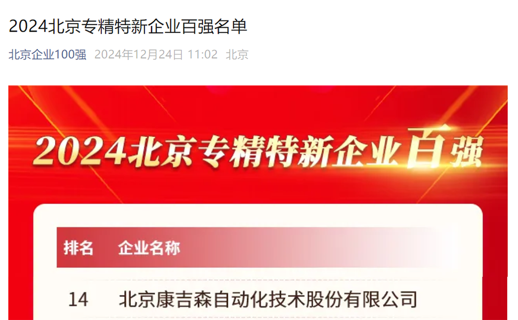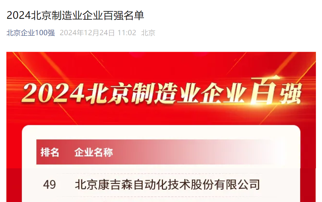 2024年12月24日,“2024京津冀產(chǎn)業(yè)鏈供應(yīng)鏈協(xié)同發(fā)展大會(huì)暨北京百?gòu)?qiáng)企業(yè)論壇”發(fā)布了2024北京企業(yè)百?gòu)?qiáng)榜單,北京康吉森自動(dòng)化技術(shù)股份有限公司(以下簡(jiǎn)稱“康吉森股份”)榮登“2024北京制造業(yè)企業(yè)百?gòu)?qiáng)”“2024北京專精特新企業(yè)百?gòu)?qiáng)”榜單。